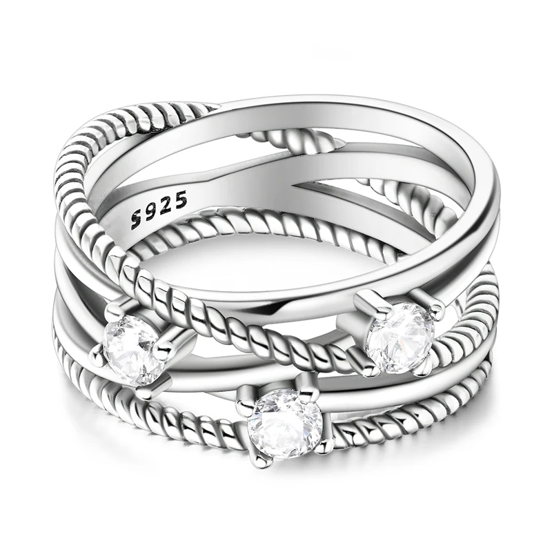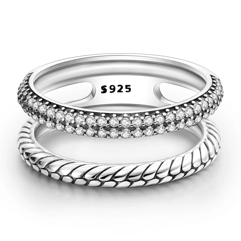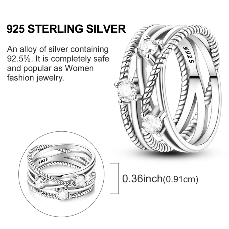 خواتم الاصبع الفضية للنساء الأصلي 925 فضة خاتم كوكتيل هندسي مكعب الزركون