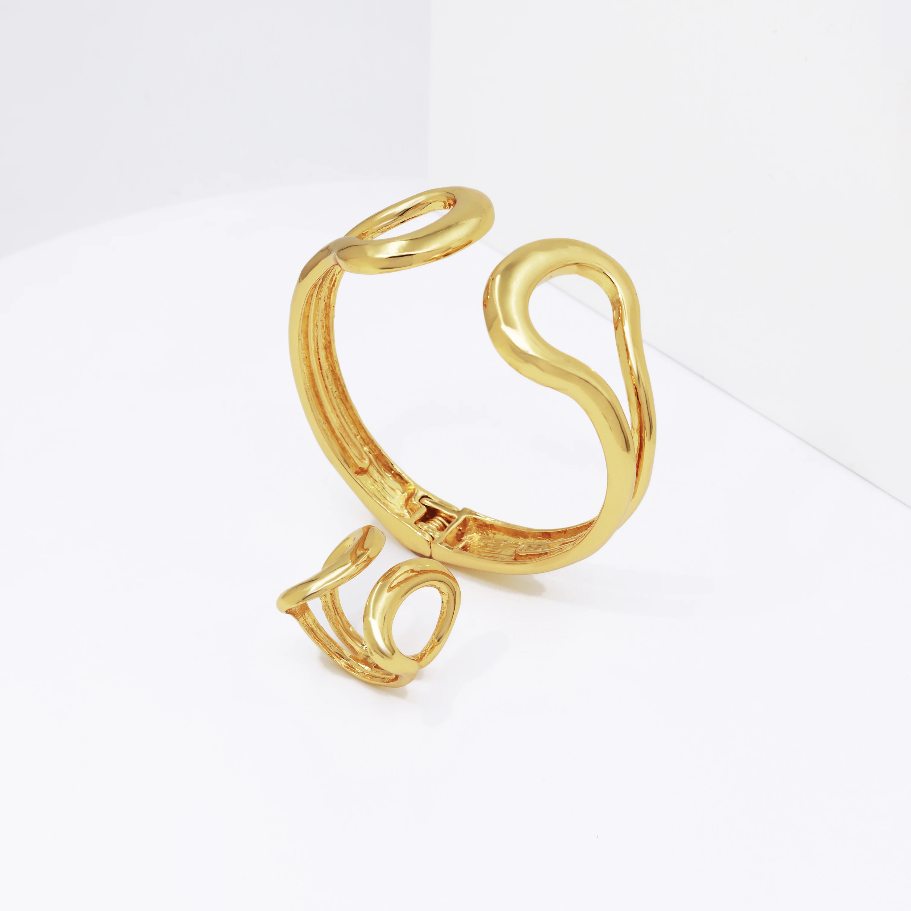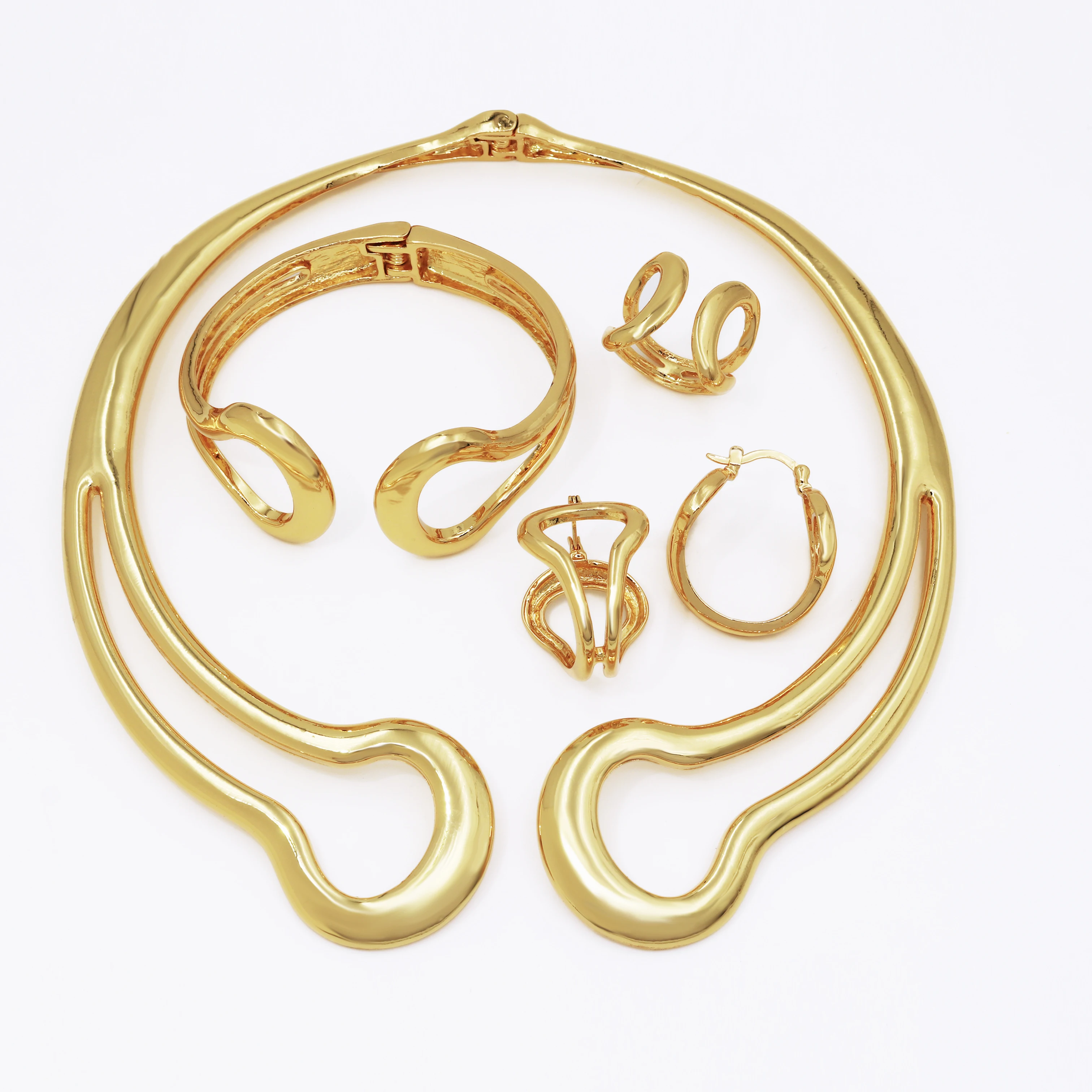 مجوهرات مطلية بالذهب عيار 18 للنساء التصميم الإيطالي الكلاسيكي قلادة هوب لامعة مع الأقراط والإسمورة