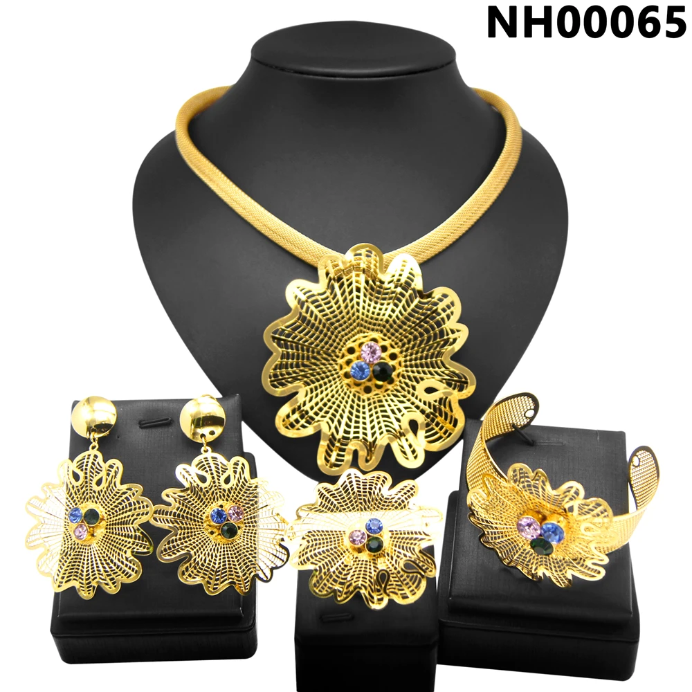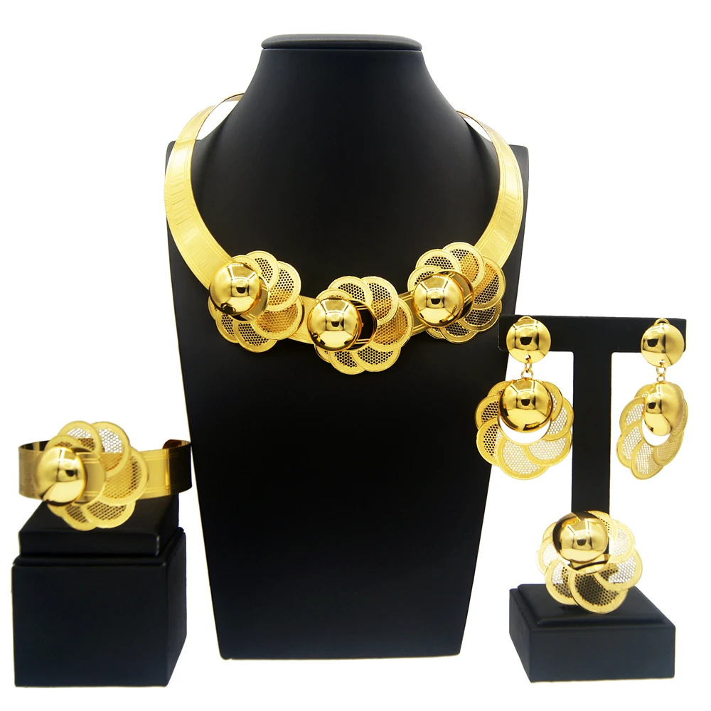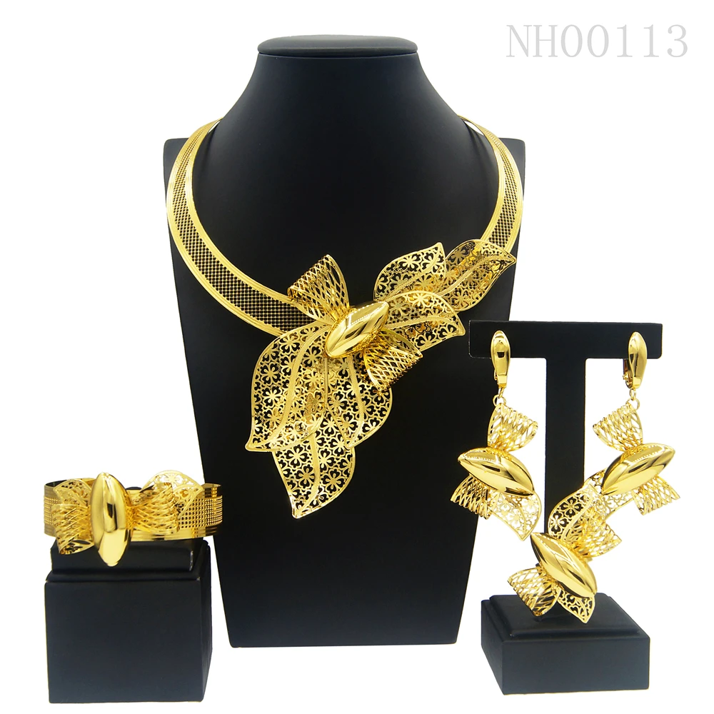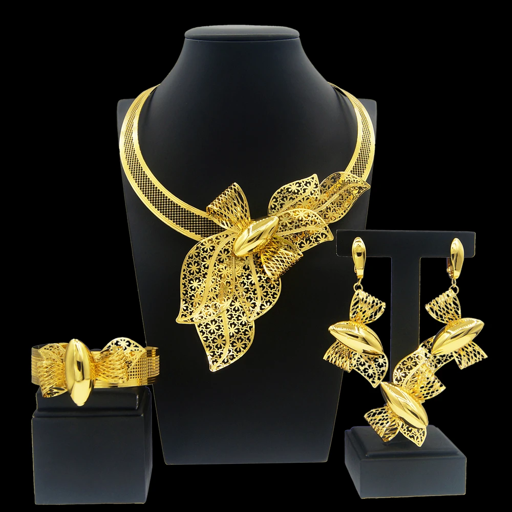 مجموعة مجوهرات بلون ذهبي للنساء ، قلادة مطلية بالذهب عيار 24 ، أقراط ، خواتم ، أساور ، هدايا زفاف