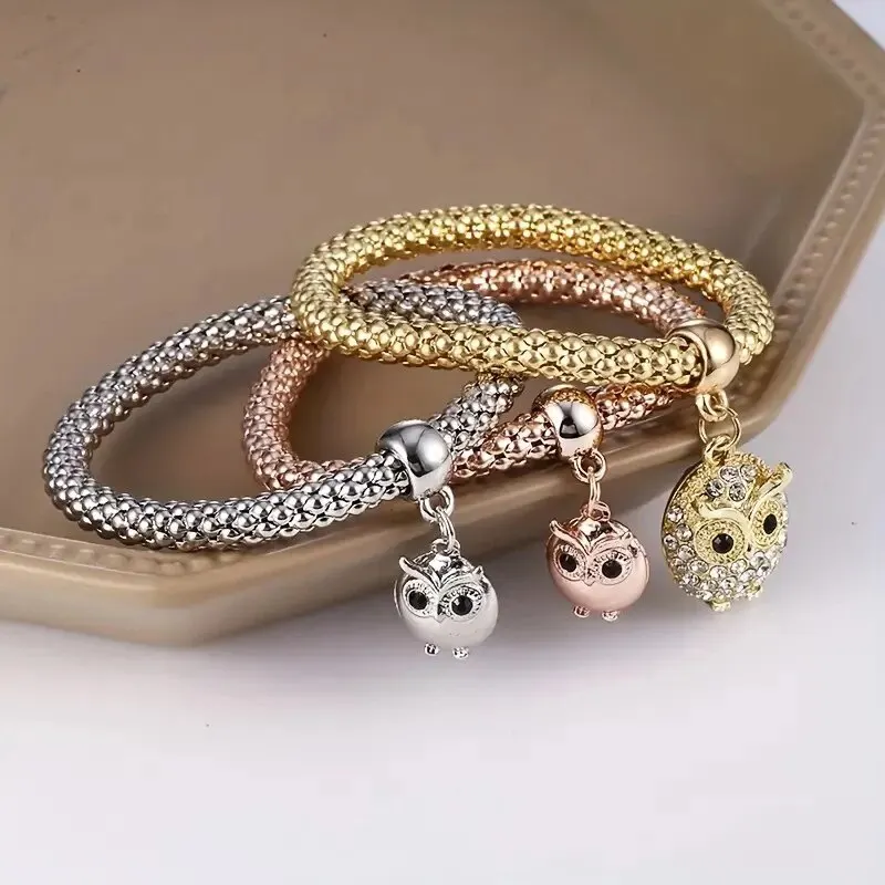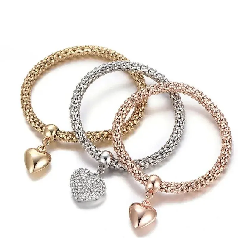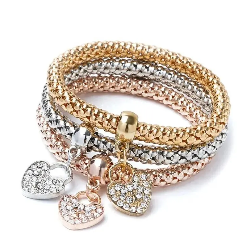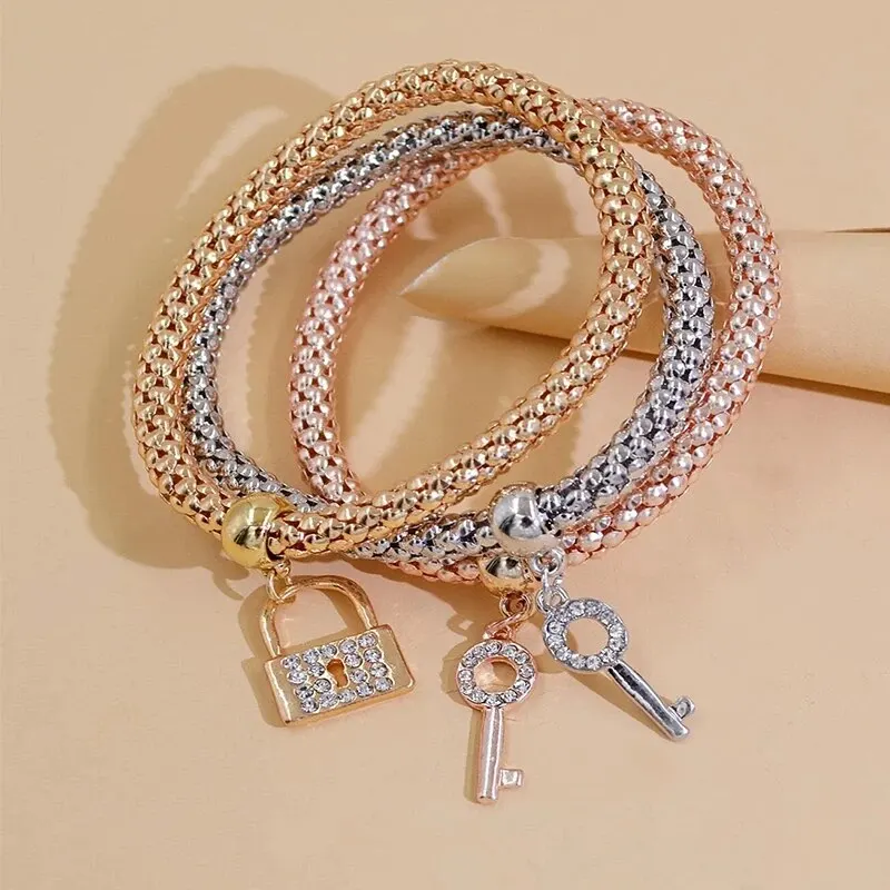 3 قطعة القلب مفتاح قفل، سحر السوار، تصفيح الفضة اللون سلسلة