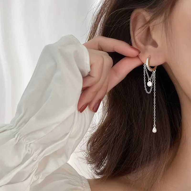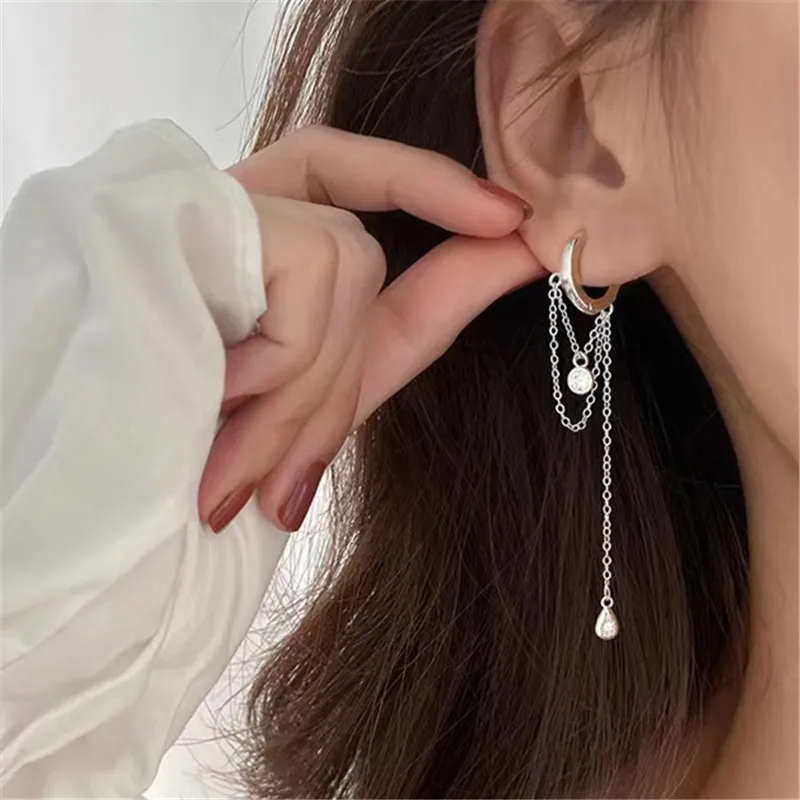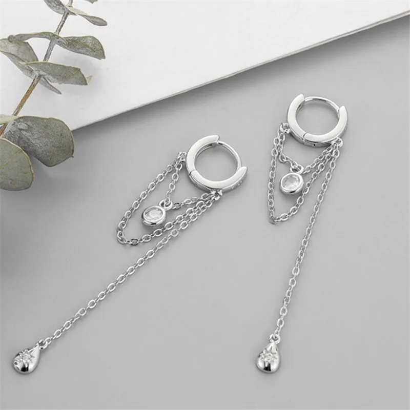 سلسلة مطلية بالفضة ، قرط قطرة ماء من الزركون للنساء ، مجوهرات حفلات الزفاف