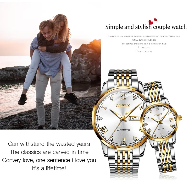 زوج ساعات رجالي وحريمي له ولها، ساعة مقاومة للماء هدايا للرجال النساء