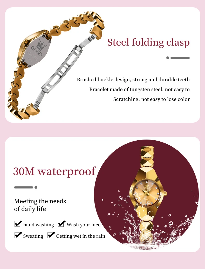 الفولاذ الصلب كوارتز ساعة للنساء ، مقاوم للماء السيدات ، أوليف العلامة التجارية الأعلى
