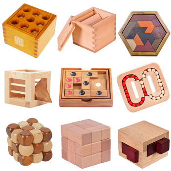 لغز خشبي كلاسيكي ثلاثي الأبعاد IQ للبالغين والأطفال ، تنمية العقل